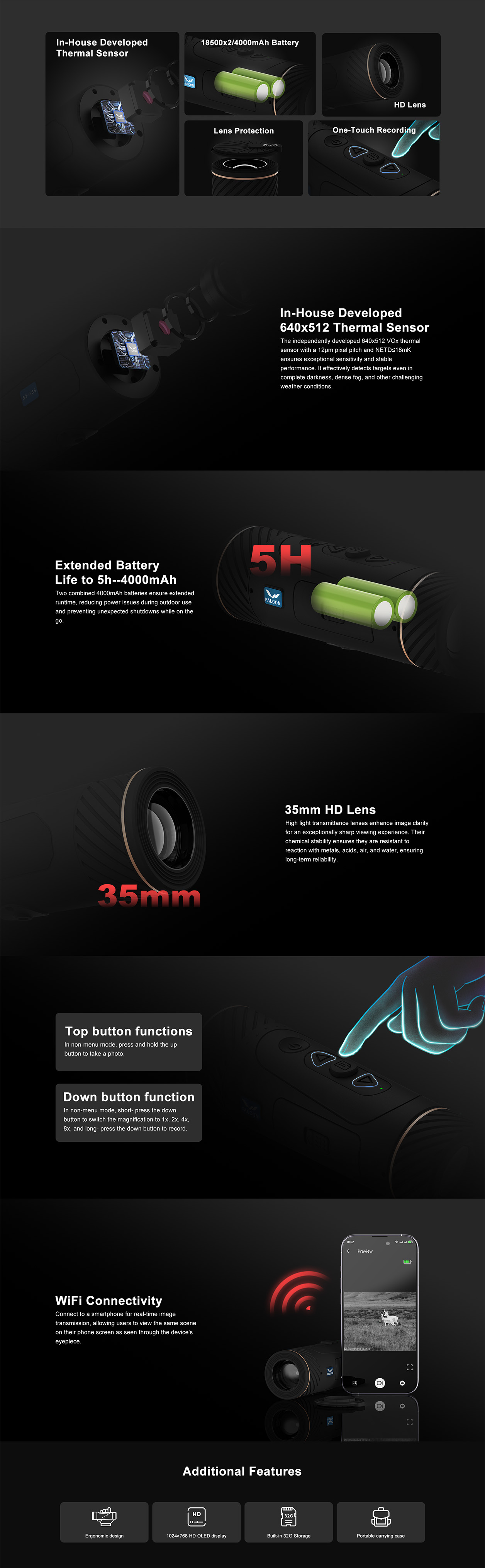 FALCON SURTUR is not just another thermal monocular – it is a professional observation device that provides confidence, precision, and performance in any situation. Whether you are an avid hunter, wildlife observer, or operating in challenging terrain, FALCON SURTUR gives you a comprehensive view of your surroundings.