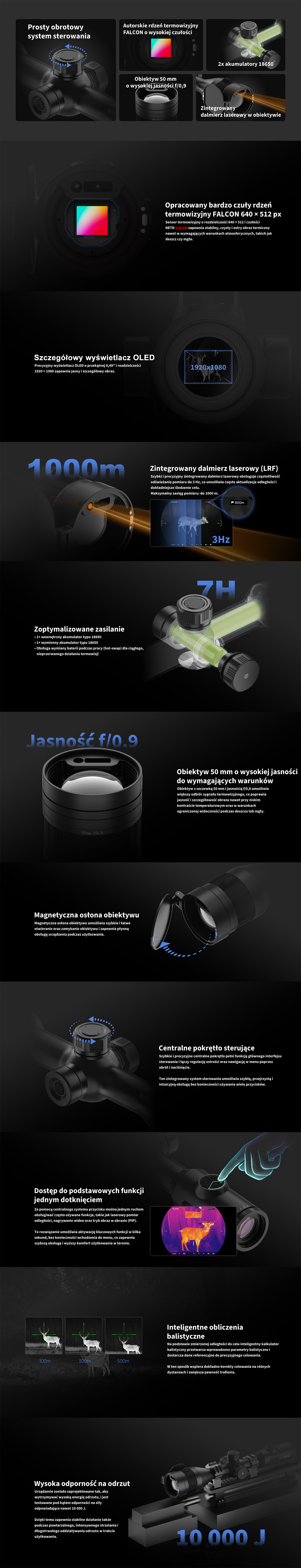 – Zintegrowany moduł pomiaru odległości do 1000 m
