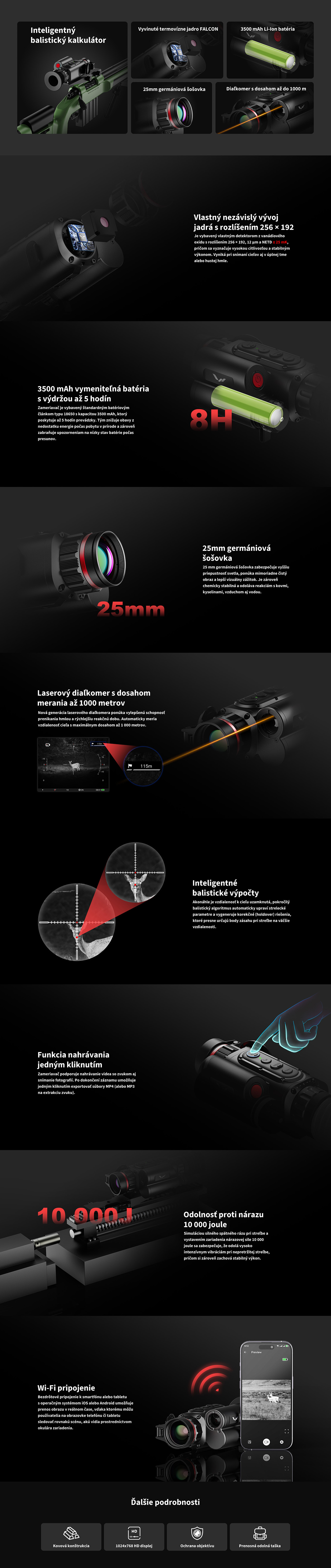 S odolnosťou IP67 zvládne FALCON MEDUSA dážď, sneh aj prašné prostredie. Je ideálny pre nočný lov, pozorovanie zveri aj taktické nasadenia. Režim spánku šetrí energiu, takže zariadenie vydrží aj pri dlhšom pobyte v teréne.